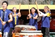 林は4種類の太鼓を組んだセットに大太鼓、銅鑼などを持ち込む計画。山下は「たたき合ったら太鼓にかなわないと分かっていても、英哲さんとやるたびに挑みたくなるんです。ふふっ」と目を細めた。(共同通信=須賀綾子)