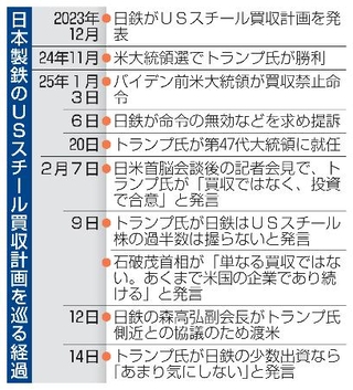 日米首脳会談で突破口が開けたかに見えた日本製鉄のUSスチール買収計画で、トランプ米大統領と日本側との温度差が鮮明になっている。トランプ氏は株の過半数取得すら認めない考えを繰り返し、日鉄とのトップ会談の日程も定まらない。立ちはだかる“トランプの壁”を前に、視界は不良だ。