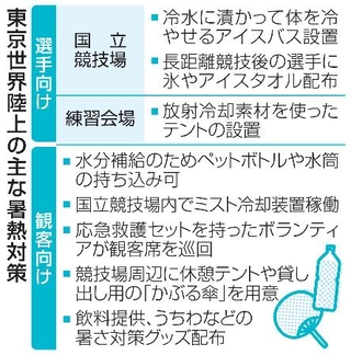 【世界陸上】選手は猛暑対策、運営側も工夫 日本は地の利生かして準備 2025/9/13 08:47 印刷 ニュースの核心 13日に開幕する陸上の世界選手権東京大会は、9月下旬から行われた2019年のドーハ大会に次いで、史上2番目に遅い時期での開催となる。ただ、9月になっても記録的猛暑は継続。選手は暑熱対策を施し、運営側も設備を工夫して臨む。 関連記事 田中希実、世界陸上東京大会の奮闘を県庁で報告 11月、ケニア合宿へ 「走りたい気持ちに正直に」 【世界陸上閉幕】日本の開催能力、再評価 輸送で課題もトラブルなし 【世界陸上の選手保護】中傷、性的撮影の対策強化 関係組織、卑劣行為許さず 田中希実、4大会連続決勝へ 世界陸上東京大会女子5000m 5年前の低迷から復活 アシックス、世界陸上で140選手がシューズ採用 「選手の本音」生かす 関連記事 田中希実、世界陸上東京大会の奮闘を県庁で報告 11月、ケニア合宿へ 「走りたい気持ちに正直に」 【世界陸上閉幕】日本の開催能力、再評価 輸送で課題もトラブルなし 【世界陸上の選手保護】中傷、性的撮影の対策強化 関係組織、卑劣行為許さず 田中希実、4大会連続決勝へ 世界陸上東京大会女子5000m 5年前の低迷から復活 アシックス、世界陸上で140選手がシューズ採用 「選手の本音」生かす きょうの注目記事 インフル流行、兵庫県内で注意報レベル 昨季に比べ6週間早く 11/6 16:04 社会 篠山小、11月でも水泳授業 市営の屋内温水プール活用 11/6 05:30 丹波 教育 「毎日登山」草創期のサイン帳、神戸に現存 大正時代や戦中の3冊 11/6 16:30 社会 神戸 <随想>TOMOMI 秘密のオアシス 11/6 16:00 随想 50年前の「イイミミ」を音声で再現 ポッドキャスト配信スタート 11/6 12:50 インフォメーション おしえてイイミミ 文化 神戸新聞社 「モルック」世界大会で3位 西宮拠点「武庫川モルックマメシーバ」 11/6 05:30 阪神 スポーツ 動物に襲われ男性軽傷 加東署が周辺警戒、注意呼び掛け 11/6 07:36 事件・事故 予約だけで1万部突破、ミャクミャクの「成長過程」絵本に 11/6 05:30 経済 万博 阪急神戸線、新開地-神戸三宮の運転再開 通勤客ら14万1400人に影響、上下線計368本に運休や遅れ 11/6 11:09 事件・事故 突っ込んだ車の運転手、死因は急性心筋梗塞 加古川・多重事故 11/5 21:37 事件・事故 ドラレコに「車に追突し、スピード落とさず車列に向かう様子」 11/5 21:46 事件・事故 動画ニュース パーキンソン病の元教師、エッセー集出版 明石の増田さん 11/6 05:30 明石 きょうの注目記事 インフル流行、兵庫県内で注意報レベル 昨季に比べ6週間早く 11/6 16:04 社会 篠山小、11月でも水泳授業 市営の屋内温水プール活用 11/6 05:30 丹波 教育 「毎日登山」草創期のサイン帳、神戸に現存 大正時代や戦中の3冊 11/6 16:30 社会 神戸 <随想>TOMOMI 秘密のオアシス 11/6 16:00 随想 50年前の「イイミミ」を音声で再現 ポッドキャスト配信スタート 11/6 12:50 インフォメーション おしえてイイミミ 文化 神戸新聞社 「モルック」世界大会で3位 西宮拠点「武庫川モルックマメシーバ」 11/6 05:30 阪神 スポーツ 動物に襲われ男性軽傷 加東署が周辺警戒、注意呼び掛け 11/6 07:36 事件・事故 予約だけで1万部突破、ミャクミャクの「成長過程」絵本に 11/6 05:30 経済 万博 阪急神戸線、新開地-神戸三宮の運転再開 通勤客ら14万1400人に影響、上下線計368本に運休や遅れ 11/6 11:09 事件・事故 突っ込んだ車の運転手、死因は急性心筋梗塞 加古川・多重事故 11/5 21:37 事件・事故 ドラレコに「車に追突し、スピード落とさず車列に向かう様子」 11/5 21:46 事件・事故 動画ニュース パーキンソン病の元教師、エッセー集出版 明石の増田さん 11/6 05:30 明石 ニュースの核心新着ニュース ニュースの核心新着ニュース