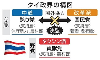 タイのアヌティン首相が政権発足から2カ月余りで解散総選挙に打って出た。カンボジアとの衝突によって高揚する愛国心が追い風になると踏んで決断したとの見方が広がる。長年タイ政治で存在感を放ったタクシン元首相派が失速し、選挙戦はアヌティン氏の与党と閣外協力してきた最大野党との全面対決という新たな構図になる。