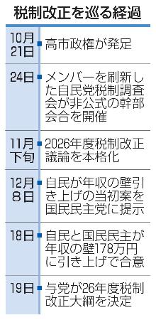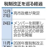 高市政権下で初となる与党税制改正大綱は、経済成長を重視する首相の意向を踏まえ、減税メニューが並んだ。自民党税制調査会のメンバーから減税に慎重な重鎮を排除するなど当初から首相の姿勢は一貫。改正作業の最終盤には国民民主党の協力を得るため自ら減税のアクセルを踏み込んだ。「責任ある積極財政」を掲げるが、財政規律への配慮は置き去りになりつつある。