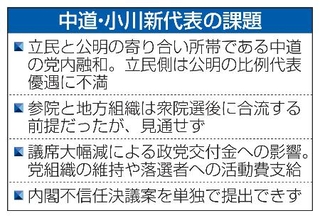 中道改革連合は新代表に小川淳也氏を選出し、「衆院選惨敗ショック」からの立て直しに着手する。まずは挙党態勢の構築を図るが、公明党出身者の比例代表優遇への不満は根強い。参院や地方組織の合流も見通せず、課題は山積する。特別国会では巨大与党への対抗手段も減り、小川氏にはいばらの道が待ち受ける。