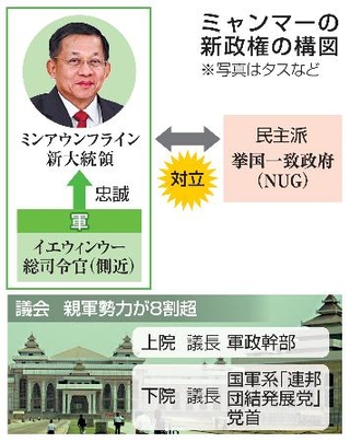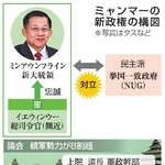 ミャンマー軍事政権を率いるミンアウンフライン前国軍総司令官が「民主政府」の大統領に横滑りし、事実上の軍支配継続が固まった。拘束下のアウンサンスーチー氏を信奉し、軍政打倒を目指し続けた民主派は、絶望の淵にいる。指導部への非難と国際社会への不満が募り、強まる軍政との共生を模索する動きも。新大統領は軍トップの後任に側近を充て、軍への影響力も保持する。