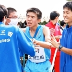 25日に行われた全国高校駅伝大会(京都市)に男女そろって出場した西脇工高陸上部が27日、兵庫県西脇市役所(同市下戸田)を訪問し、片山象三市長や市職員に結果を報告した。市からは男女の監督と主将に花束が贈られ、片山市長が「大舞台で素晴らしいたすきリレーだった」と選手をねぎらった。男子の足立幸永監督は「市や市民のおかげで、最高の準備をして大会に臨めた」と感謝を述べた。