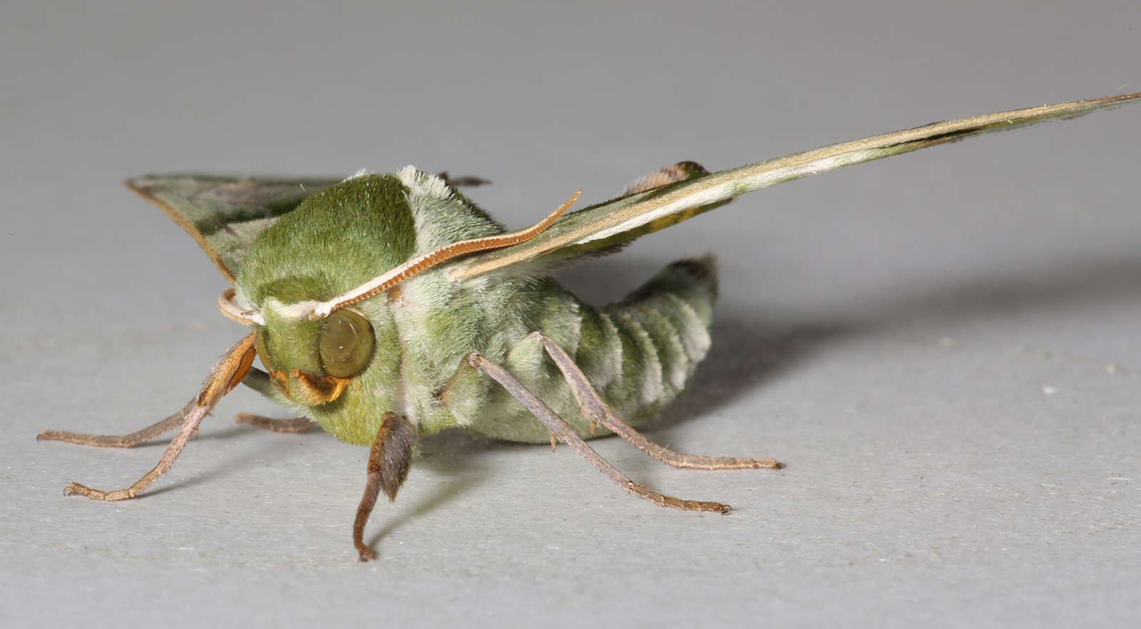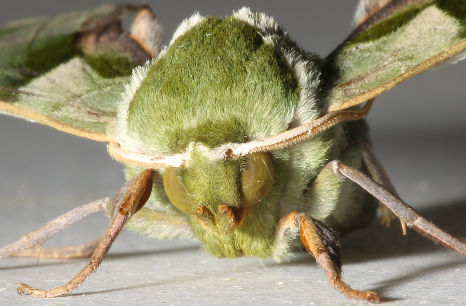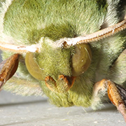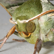 成虫の体とはねが緑色。夜間、灯火に集まってくる。幼虫はケヤキ・アキニレの葉を食べる。蛹で越冬。はねを広げた時の幅は約70ミリ。成虫は年2回発生し、5~6月と7~8月。分布は北海道、本州、四国、九州。