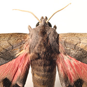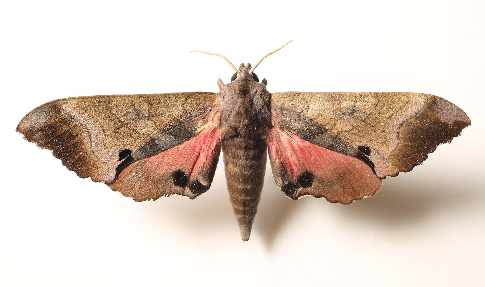 平地で最も普通に見られるスズメガの一つ。灯火にもよく飛来する。後ろはねの濃いピンク色が目立つが、止まった時は前のはねに隠れる。はねを広げた時の幅は約90ミリ。口が退化し、花に飛んで来ることはない。幼虫はウメ、サクラ、モモなどの葉を食べる。サナギで越冬。成虫出現期は5~8月。