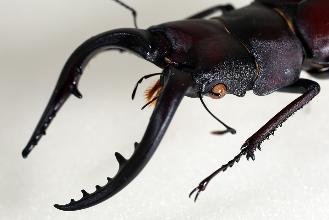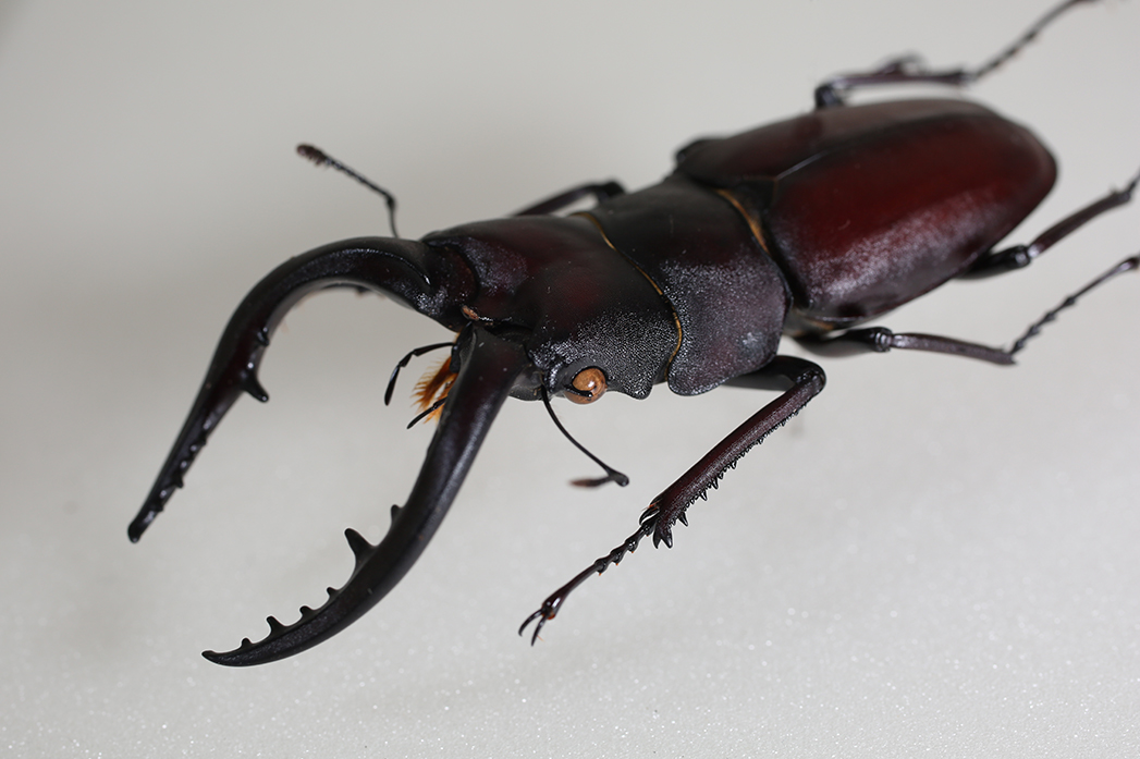日本を代表するクワガタムシの一つ。雑木林に見られる。オスの大アゴの内側に鋸(のこ)のように歯が多く並んでいることから、この名が付いた。幼虫の時に多くの餌を食べたものが、大きいアゴを持つようになる。神戸とその周辺では、アゴの形から「水牛」とも呼ぶ。