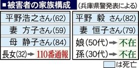 「逃げえ」。浩之さんはその直前、長女(32)に向け叫んだ。その声を背に、約100メートル離れた隣家へ飛び込んだ長女。「近所の人が来て、お父さんとお母さん、おばあちゃんが刺された」。ガタガタと震えながら、電話を借りて警察に通報。その後は玄関に座り込んだまま震えが止まらなかったという。