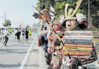 ランナーを後押しする応援イベントは、今年もコースの各地点で開かれる。楽器演奏やパフォーマンスのほか、甲冑や鉄板のコテなどを活用して地域色を打ち出したユニークさが目を引く。防災・減災関連の催しもある。(金旻革)