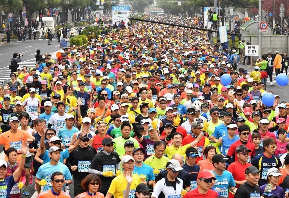 ウエーブスタート(時間差スタート)を導入し、午前9時と同9時15分の2回、号砲が鳴った。ランナーは神戸市垂水区の舞子公園付近で折り返し、神戸・ポートアイランドのゴールを目指した。