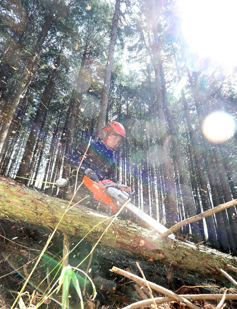 兵庫県内最高峰の氷ノ山(ひょうのせん)がそびえ、森林が市内の8割以上を占める同市。保全作業に従事する地域おこし協力隊員高橋安奈さん(29)は「森林は手を加えると、光や風が抜けて気持ちの良い空間に変わる。脱炭素につながると思うと、やりがいを感じる」と汗を拭った。