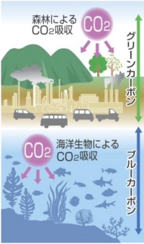 地球温暖化の原因となる二酸化炭素(CO2)の吸収源として、浅水域の海草や海藻などを活用する「ブルーカーボン」の取り組みが、新たな気候変動対策として注目されている。藻類などを増やすことで、森林のようなCO2の削減効果が期待されるからだ。