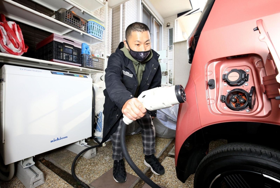 神戸市灘区の会社員若菜健太さん(42)は昨年10月、日産の軽EV「サクラ」の購入に合わせ、EVから住宅に放電する設備「V2H(Vehicle to Home)」を約80万円で購入した。