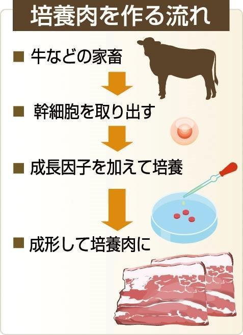 だが、生産技術の確立や安全性の確保など商品化に向けて課題は多い。国内では先行して、植物ベースの「代替肉」の製品化が進む。(石沢菜々子)