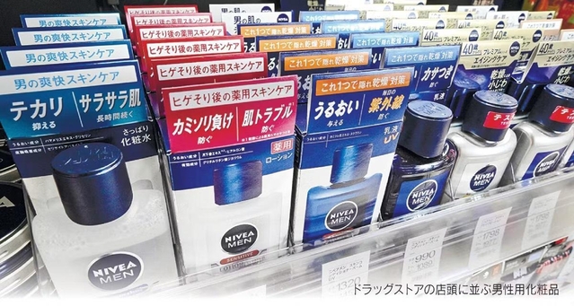 かつて男性向けのスキンケア商品といえば、ひげそり後の肌荒れを防ぐ「アフターシェーブ」が代名詞だった。今は違う。ドラッグストアなどの店頭には「うるおい・ハリ与える」「高保湿」といった機能を強調する商品が並ぶ。