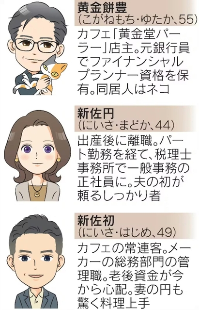カフェ「黄金堂パーラー」では店主の黄金餅豊と常連客、新佐初と円がスマートフォンにかかるお金の話を続けています。円は「最近はスマホ端末の値段が高くて、買い替えをちゅうちょしてしまいます」と話します。豊は「端末代金を少しでも安く済ませる方法はあるよ」と答えます。