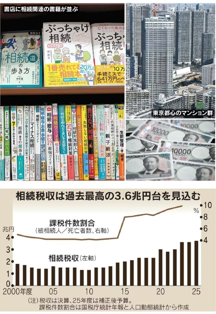 相続税収の増加が止まらない。2025年度は3.6兆円台と過去最高を更新する見通しだ。15年に課税対象が広がった上、近年は都市部の地価上昇、少子化によるきょうだいの減少も税収を押し上げる。負担の裾野は徐々に広がっており、大相続時代が到来しつつある。「お金持ちの家の子だけが支払う税」というイメージは過去のものになっている。