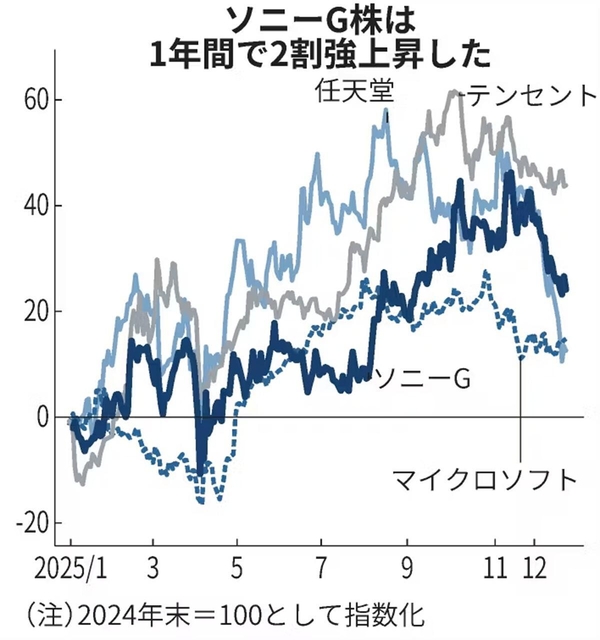 日本経済新聞の「2026年の注目銘柄」調査では、市場目線の経営で競争力を磨き世界に伍する企業の名が挙がった。その一つがソニーグループだ。総合エンタメ企業に脱皮し成長期待が高い。ゲームで築いた利用者1億人の「経済圏」を生かし収益力を高めれば、昨年記録した上場来高値を超えて一段の上値を試す道筋が見えてくる。