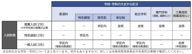 もちろん普通科・総合学科以外の、工業科、商業科など専門性の高い学科などについては、県下全域が対象です(明石商業の商業科を除く)。