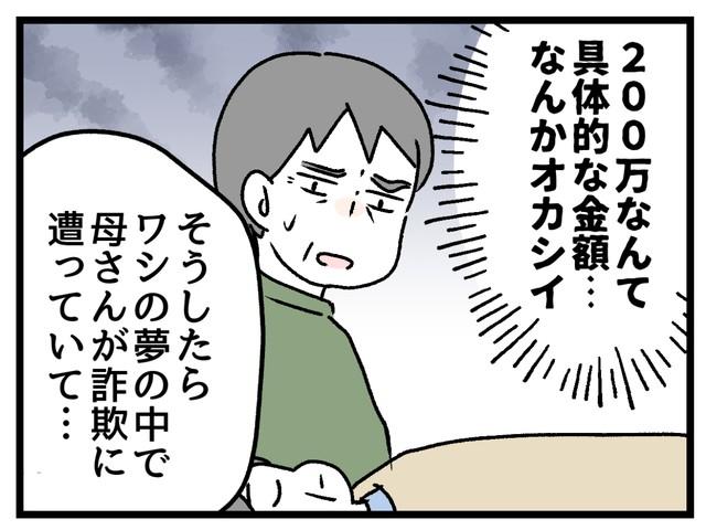 お母さんが“詐欺被害”に遭ってる? 高齢の両親が「200万円」をめぐって大喧嘩!?真相は……【漫画】 2026/2/27 17:00 印刷 話題 高齢夫婦が「200万円」を理由に大喧嘩!しかしよくよく聞いてみると…? 記事へ戻る 関連記事 「あなたに詐欺容疑、紙幣を確認」と脅され現金振り込む 小野の66歳女性、300万円詐欺被害 「あなたに詐欺容疑、紙幣を確認」と脅され現金振り込む 小野の女性、300万円詐欺被害 息子名乗り「税金支払っていないので、お金用意して」と電話 81歳女性が現金150万円詐取被害 金融会社の社員名乗り「利用料金が未払い、払えなかったら裁判」と電話 63歳女性が詐欺被害 明石 息子かたる「オレオレ詐欺」で103万円詐取か 「受け子」取りまとめ役の27歳男を再逮捕 兵庫県警 関連記事 「あなたに詐欺容疑、紙幣を確認」と脅され現金振り込む 小野の66歳女性、300万円詐欺被害 「あなたに詐欺容疑、紙幣を確認」と脅され現金振り込む 小野の女性、300万円詐欺被害 息子名乗り「税金支払っていないので、お金用意して」と電話 81歳女性が現金150万円詐取被害 金融会社の社員名乗り「利用料金が未払い、払えなかったら裁判」と電話 63歳女性が詐欺被害 明石 息子かたる「オレオレ詐欺」で103万円詐取か 「受け子」取りまとめ役の27歳男を再逮捕 兵庫県警 きょうの注目記事 兵庫の公立高校、全日制は倍率0.97倍 初の1倍割れ 出願を締め切り、志願変更は3月4日まで 2/27 18:45 社会 高校受験 教育 生成AIを活用する中小企業19.4% 経営者の個人利用は36.6% 県中小企業家同友会の調査 2/27 18:23 2025年下期の景況調査 高い水準維持も足踏み感 人件費増、圧迫要因に 県中小企業家同友会 2/27 18:23 阪急電鉄、「フルマルーン」車両が復活へ 神戸線高架延伸線90年、3月2日から記念列車 2/27 19:45 中学の部活改革を支援、不登校児童の支援員を全小学校に配置 県教委の26年度予算 2/27 17:00 社会 教育 地方行政 関空・伊丹発着のリムジンバスにタッチ決済導入 訪日客らの利便性高める 阪神バスなど5社260台 2/27 18:59 神戸市役所、新2号館建設地前の歩道を通行止め、4月1日から27年10月末まで 2/27 17:45 社会 神戸 殻打ち破り、外に開く新作 宝塚で結成のバンド「The fin.」 幼い日の記憶、制作に織り込む 2/27 16:30 文化 増田製粉所、社長に竹越氏が昇格へ 親会社との連携強め、顧客開拓図る 2/27 18:23 経済 経済人事 【名簿付き】コープこうべ虹の賞 2個人13団体を表彰 手話キャスター・水本博司さんら 2/27 15:25 ラグビー・神戸スティーラーズ 飛躍、前半2位 上ノ坊ら台頭、接戦に強み 2/27 05:30 スポーツ ラグビー 北播磨医療センター 経営改善へ第三者委設置 3月10日初会合 2/27 05:30 三木 北播 医療 きょうの注目記事 兵庫の公立高校、全日制は倍率0.97倍 初の1倍割れ 出願を締め切り、志願変更は3月4日まで 2/27 18:45 社会 高校受験 教育 生成AIを活用する中小企業19.4% 経営者の個人利用は36.6% 県中小企業家同友会の調査 2/27 18:23 2025年下期の景況調査 高い水準維持も足踏み感 人件費増、圧迫要因に 県中小企業家同友会 2/27 18:23 阪急電鉄、「フルマルーン」車両が復活へ 神戸線高架延伸線90年、3月2日から記念列車 2/27 19:45 中学の部活改革を支援、不登校児童の支援員を全小学校に配置 県教委の26年度予算 2/27 17:00 社会 教育 地方行政 関空・伊丹発着のリムジンバスにタッチ決済導入 訪日客らの利便性高める 阪神バスなど5社260台 2/27 18:59 神戸市役所、新2号館建設地前の歩道を通行止め、4月1日から27年10月末まで 2/27 17:45 社会 神戸 殻打ち破り、外に開く新作 宝塚で結成のバンド「The fin.」 幼い日の記憶、制作に織り込む 2/27 16:30 文化 増田製粉所、社長に竹越氏が昇格へ 親会社との連携強め、顧客開拓図る 2/27 18:23 経済 経済人事 【名簿付き】コープこうべ虹の賞 2個人13団体を表彰 手話キャスター・水本博司さんら 2/27 15:25 ラグビー・神戸スティーラーズ 飛躍、前半2位 上ノ坊ら台頭、接戦に強み 2/27 05:30 スポーツ ラグビー 北播磨医療センター 経営改善へ第三者委設置 3月10日初会合 2/27 05:30 三木 北播 医療 話題新着ニュース 話題新着ニュース