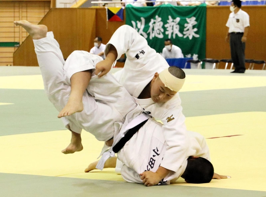 第66回兵庫県中学校総合体育大会(神戸新聞社後援)は29日、姫路市の兵庫県立武道館で柔道があった。男子団体は小野が決勝で沼島を破り、頂点に立った。