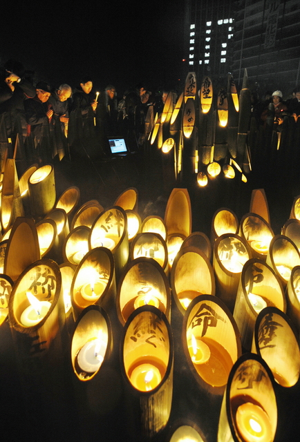 絆、復興… 「1・17」竹灯籠に文字入れ 神戸2013/1/4